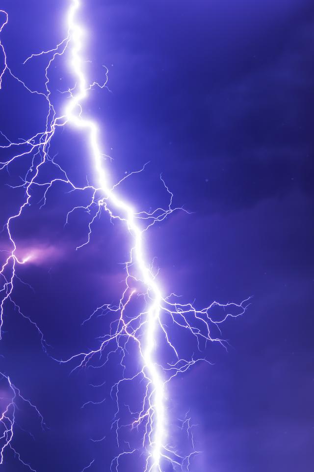 Wallpaper Bright white lightning in a stormy sky