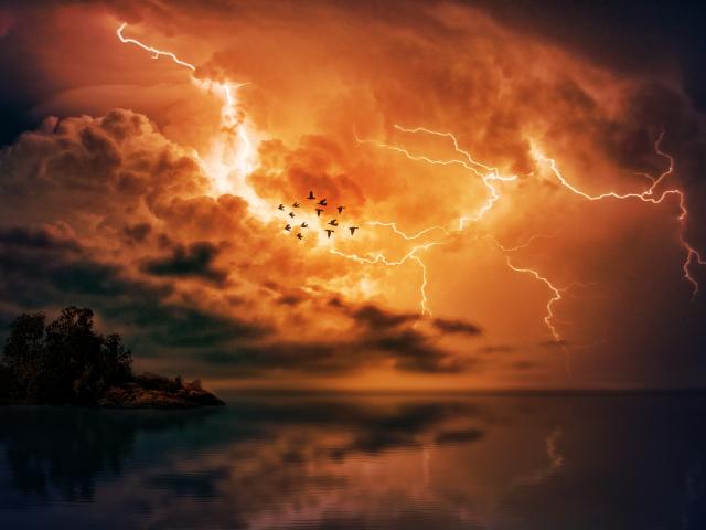 Wallpaper Lightning pierced the red stormy sky