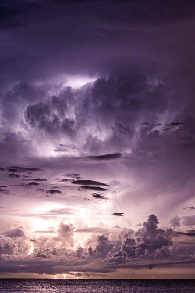 Wallpaper Black stormy sky with lightning over the sea