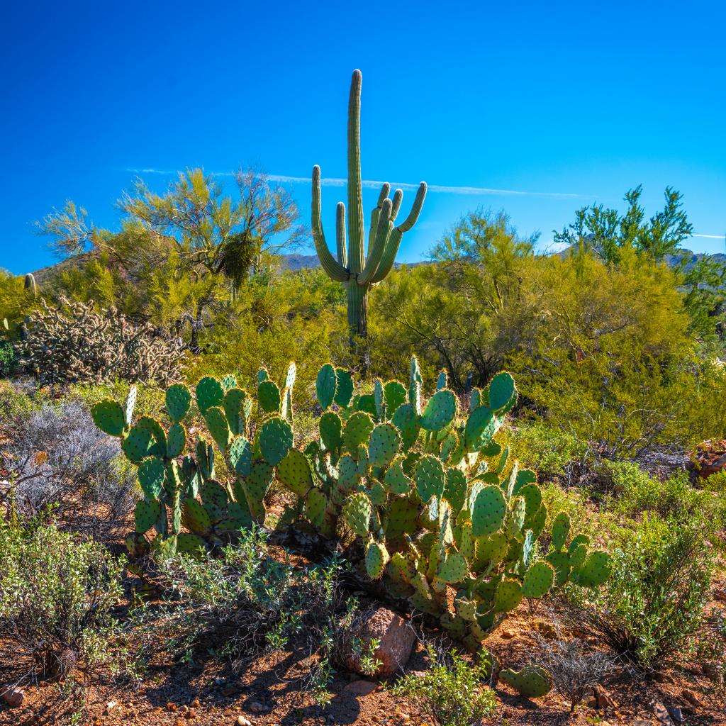 Wallpaper Green cacti under beautiful blue sky, USA