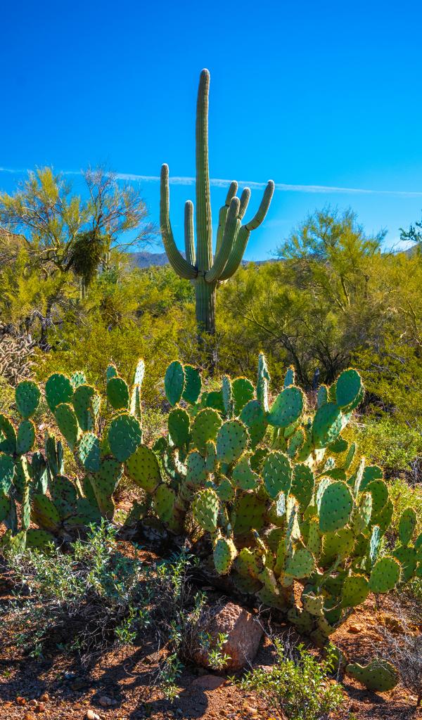 Wallpaper Green cacti under beautiful blue sky, USA