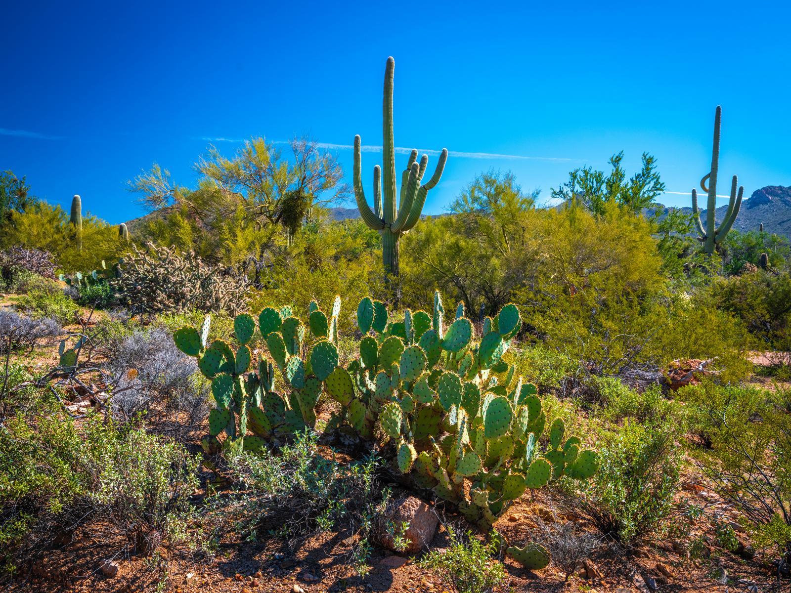 Wallpaper Green cacti under beautiful blue sky, USA