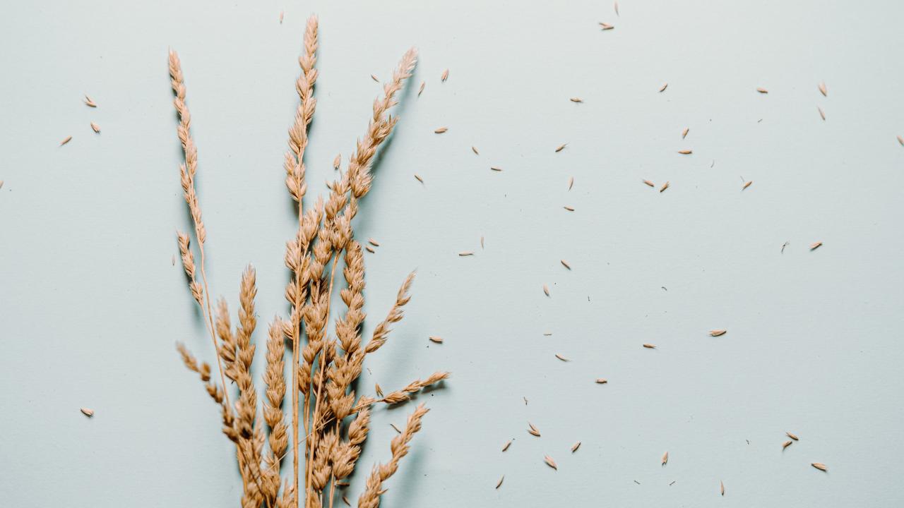 Wallpaper Dry ears of wheat lie on a gray background