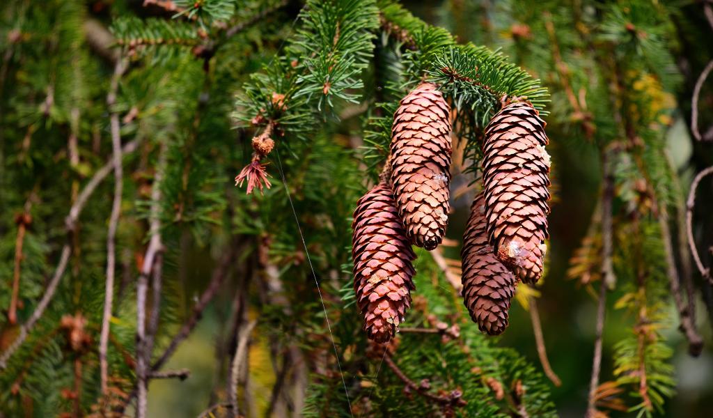 Wallpaper Big brown cones on a thorny branch of a spruce