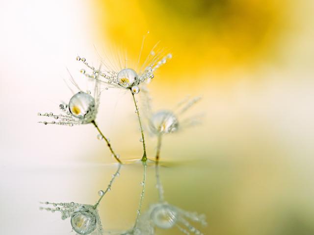 Wallpaper White dandelion fluffs with dew drops