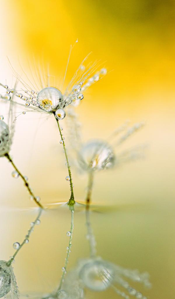 Wallpaper White dandelion fluffs with dew drops