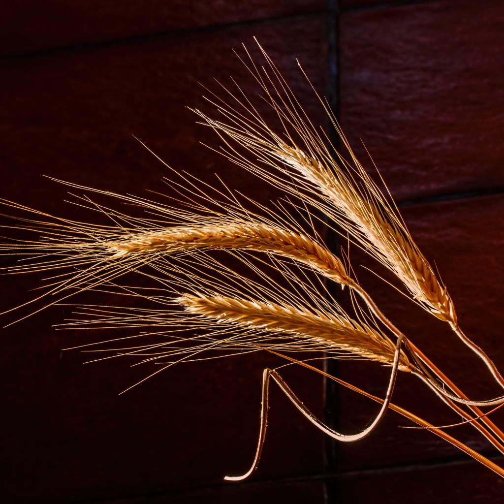 Wallpaper Pancakes with red caviar and spikelets of wheat on a plate