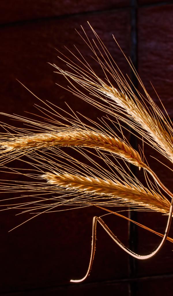 Wallpaper Pancakes with red caviar and spikelets of wheat on a plate