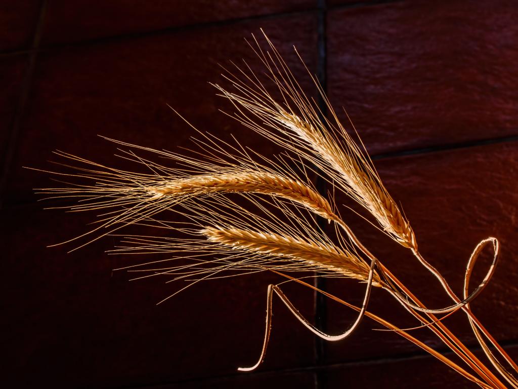 Wallpaper Pancakes with red caviar and spikelets of wheat on a plate