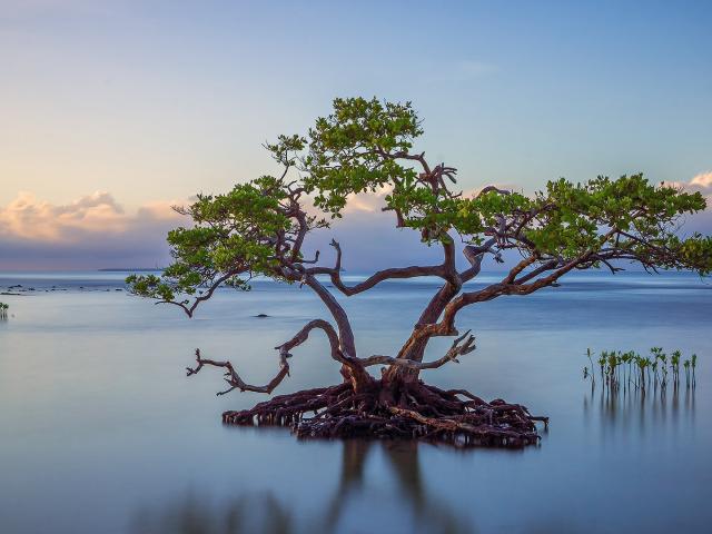 Wallpaper The tree forms the island of the roots