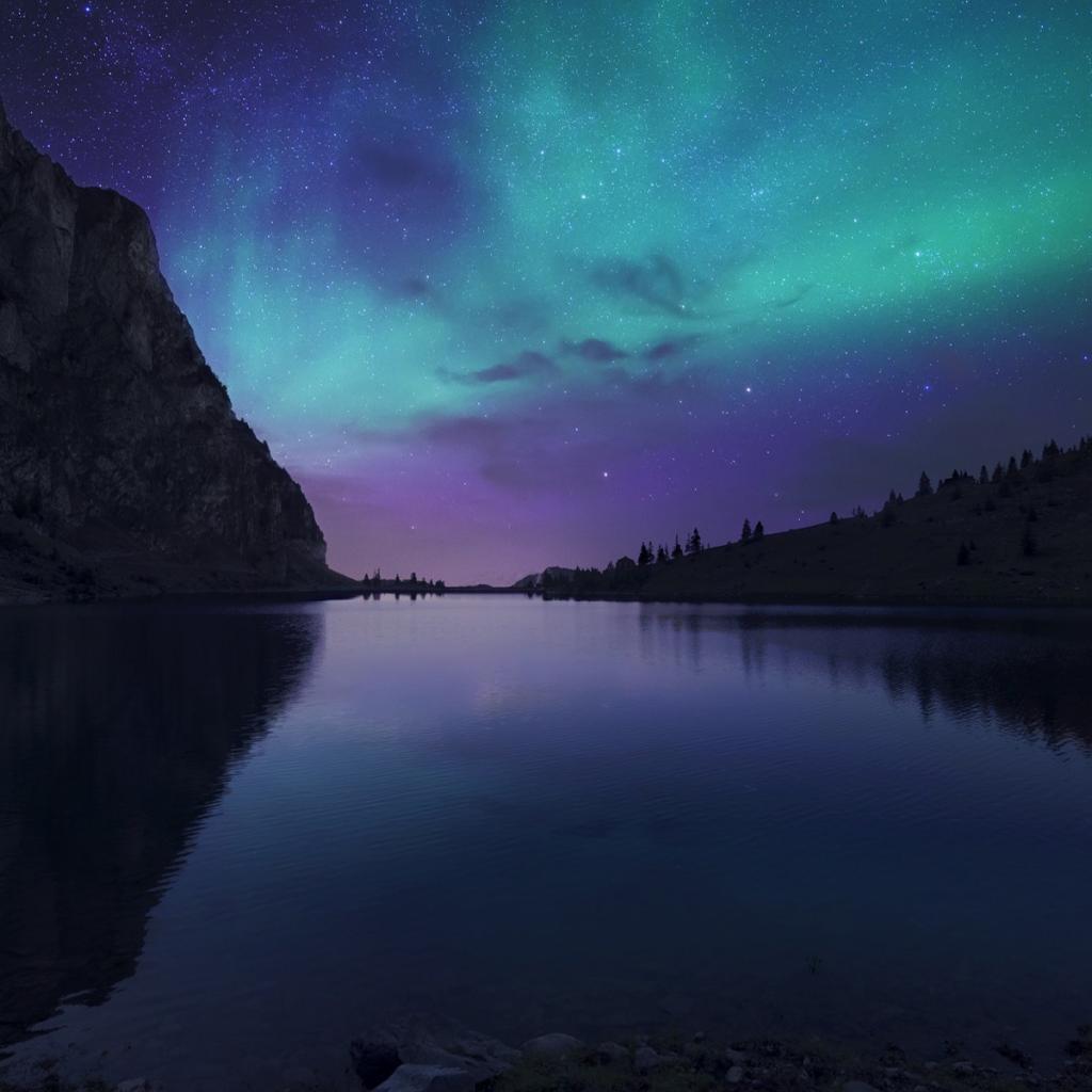 Wallpaper Northern Lights over mountain lake