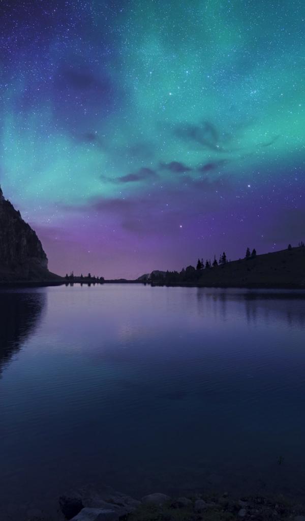 Wallpaper Northern Lights over mountain lake