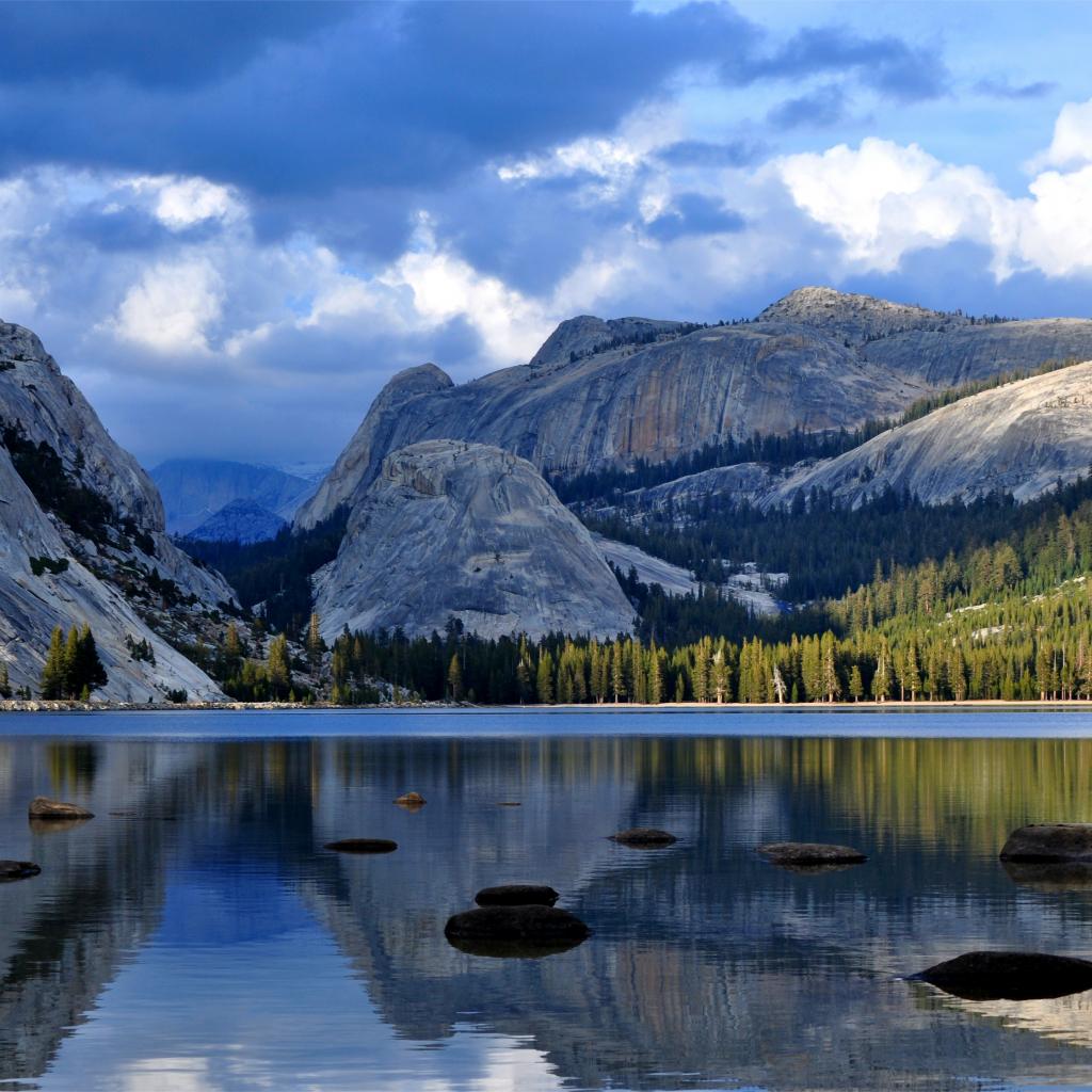 Wallpaper Lake near the granite cliff of Half-Dome, California