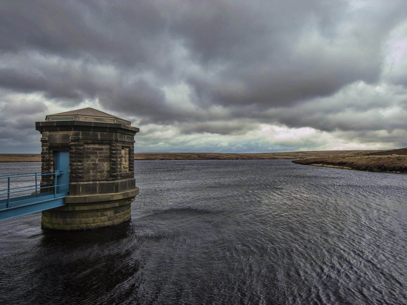 Wallpaper Tower in a lake under a cloudy sky