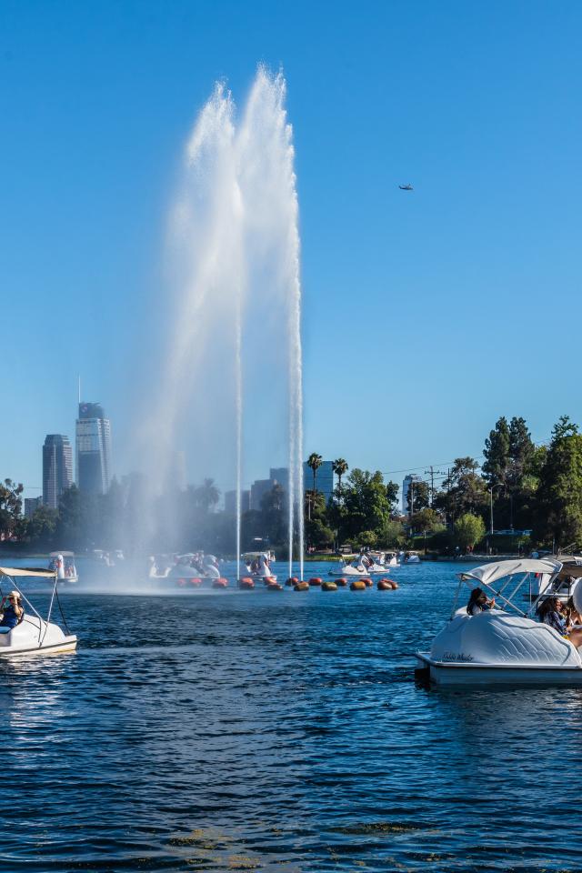 Wallpaper Beautiful lake with a fountain and catamarans