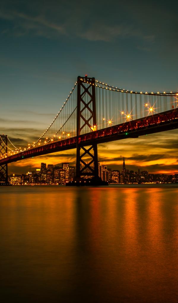 Wallpaper Bridge with lanterns at night over the river