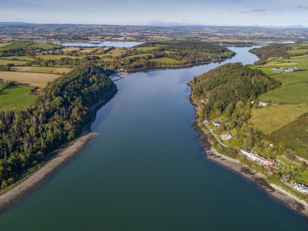 Wallpaper View of the city and the river near the forest from a height, Iceland