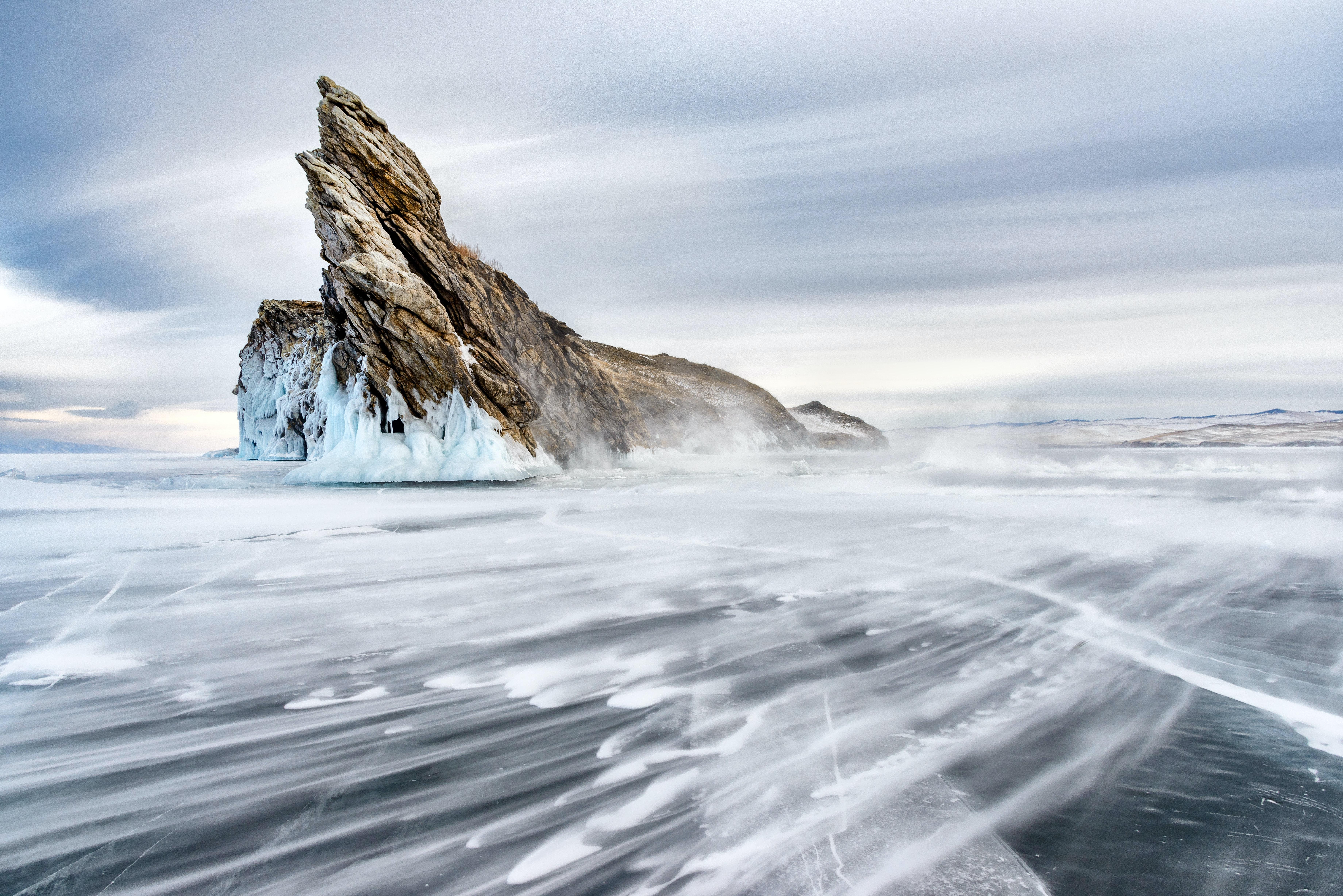 Wallpaper Ice-covered Lake Baikal on Olkhon Island, Russia