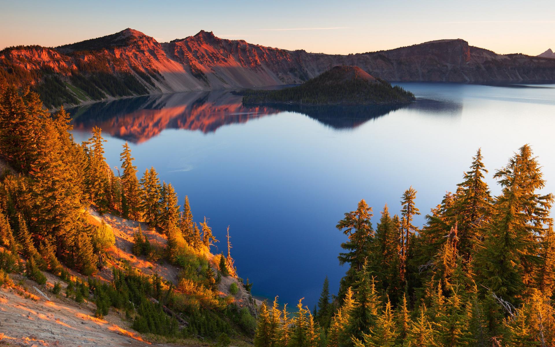Wallpaper The sky is reflected in the mountain lake in the sun