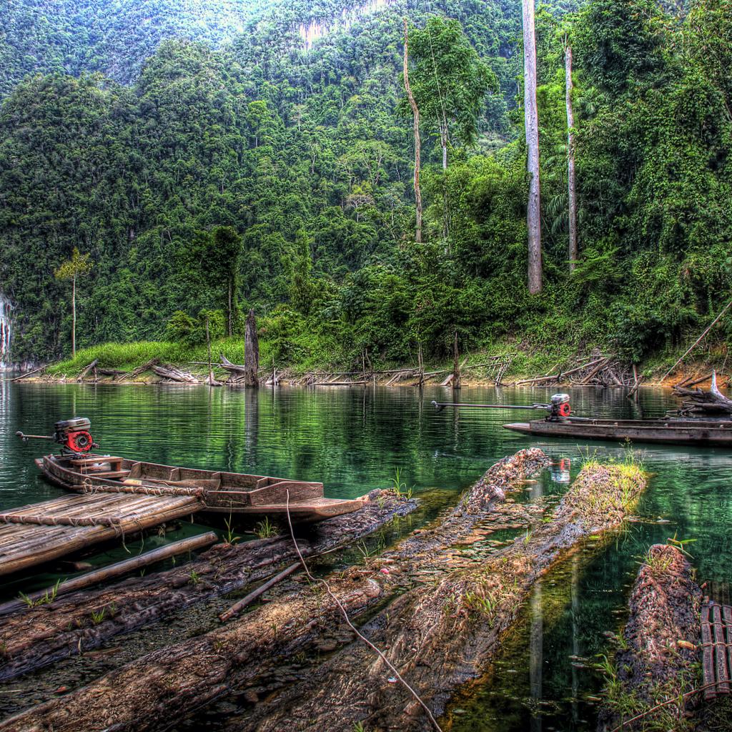 » Wallpaper Old wooden boats on the river bank