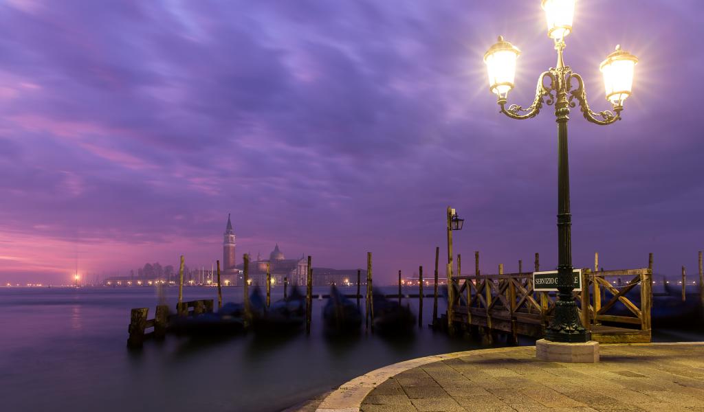 Wallpaper Lit lantern on the river bank at night