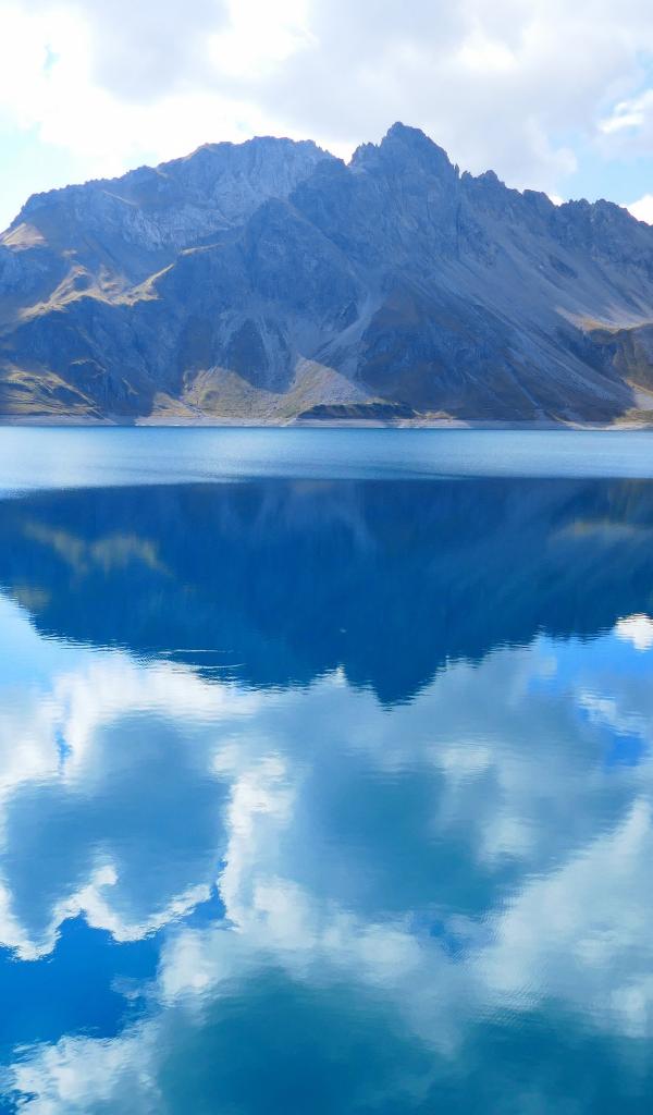 Wallpaper Big blue lake in the mountains under the blue sky