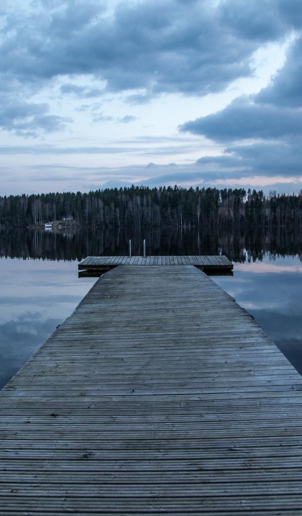 Wallpaper Large wooden bridge on the river near the forest