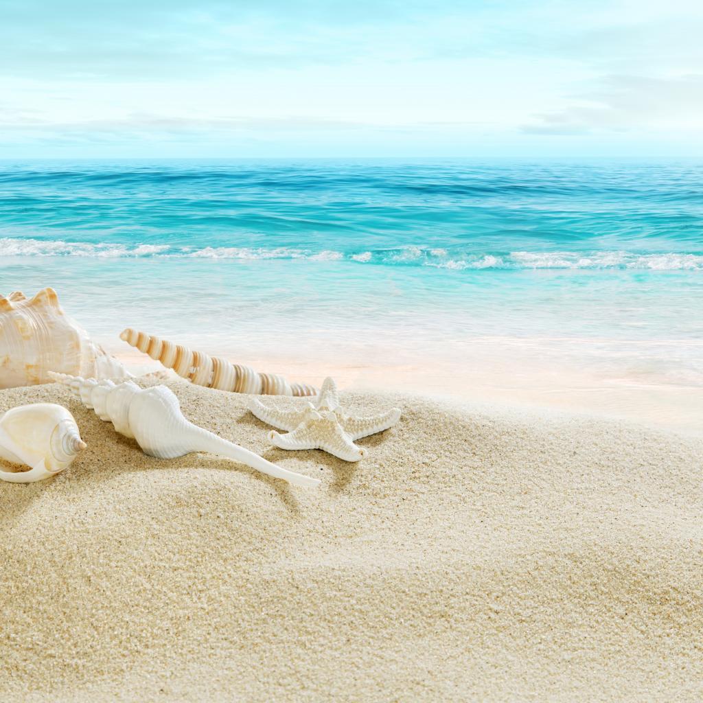 Wallpaper Shells on white sand on the coast near the sea