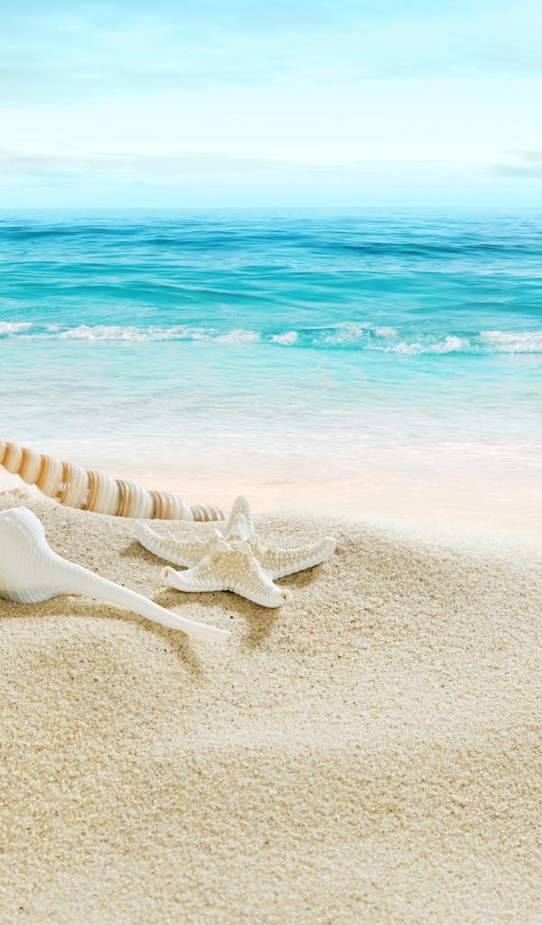 Wallpaper Shells on white sand on the coast near the sea