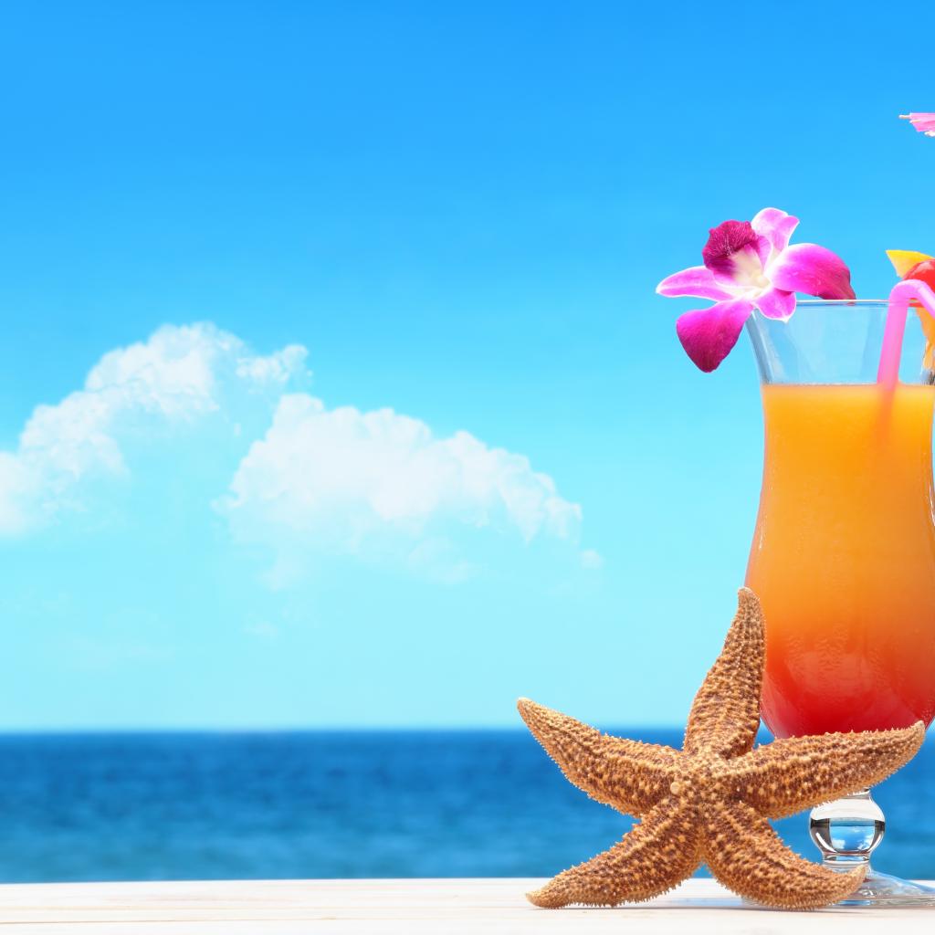 Wallpaper Summer cocktail and starfish on the background of the sea