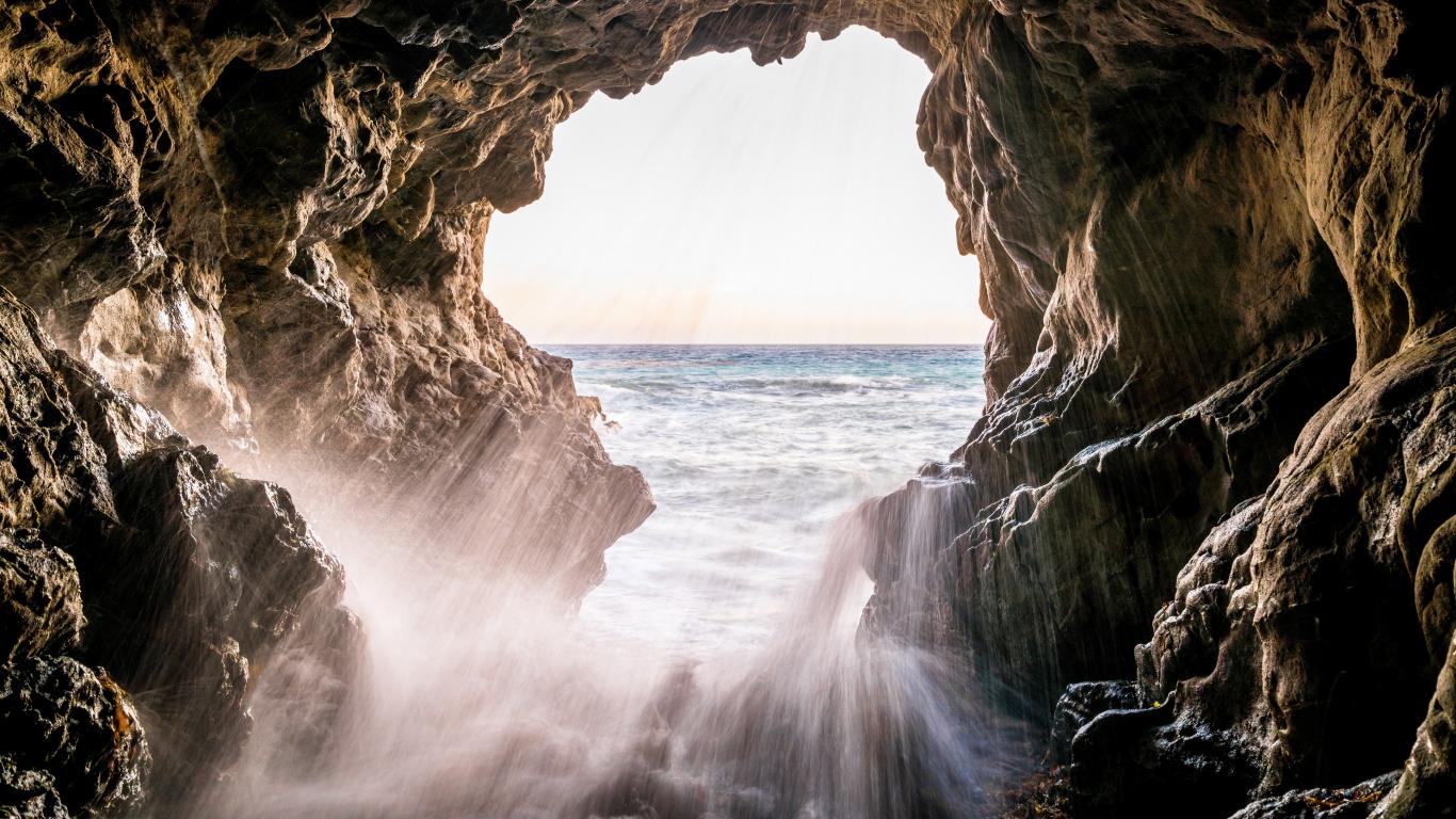 Wallpaper Splashes of the sea beat against the rocks