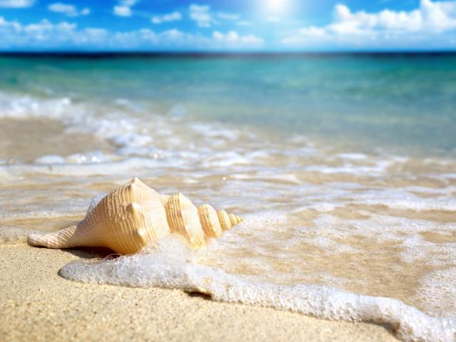 Wallpaper The big cockleshell lies in sand in a sea foam
