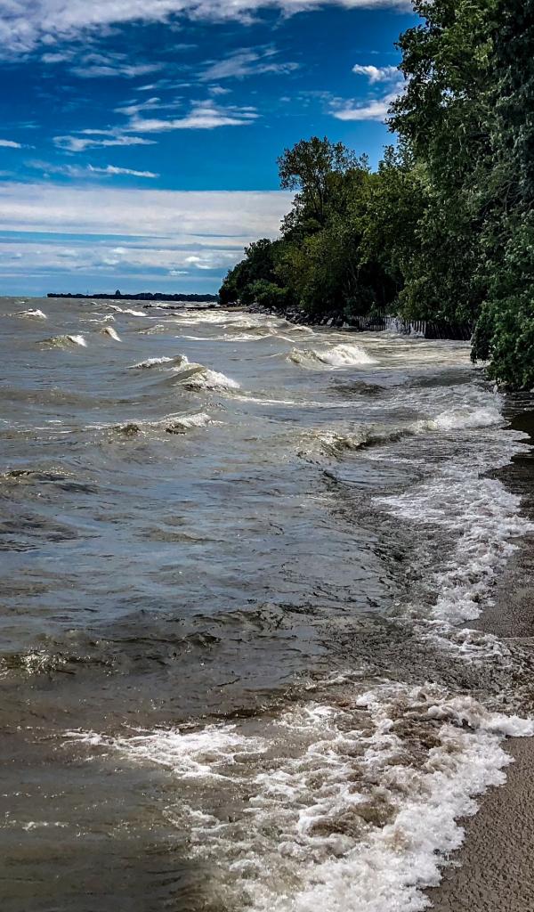Wallpaper Sea waves wash the coast under the blue sky
