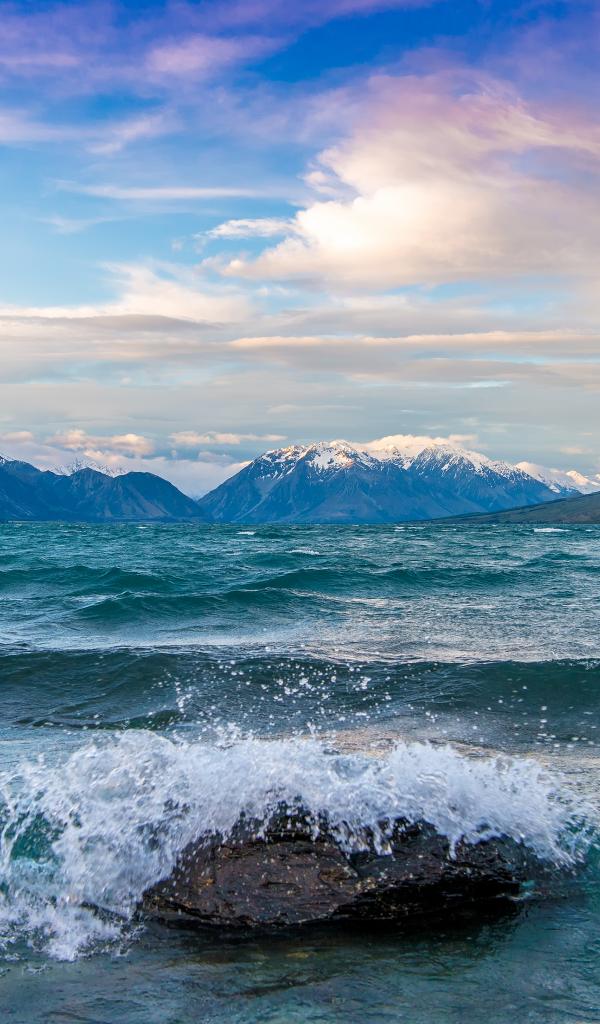 Wallpaper The waves beat against the rocks in the bay by the mountains