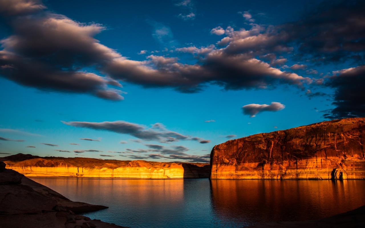 Wallpaper Rocks in the water under a blue sky with clouds