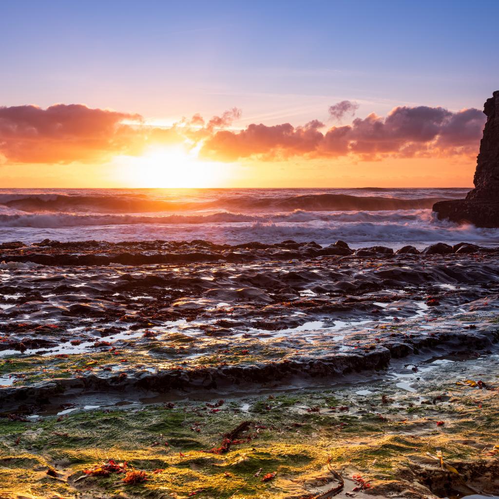 Wallpaper Big stone in sea water at sunrise