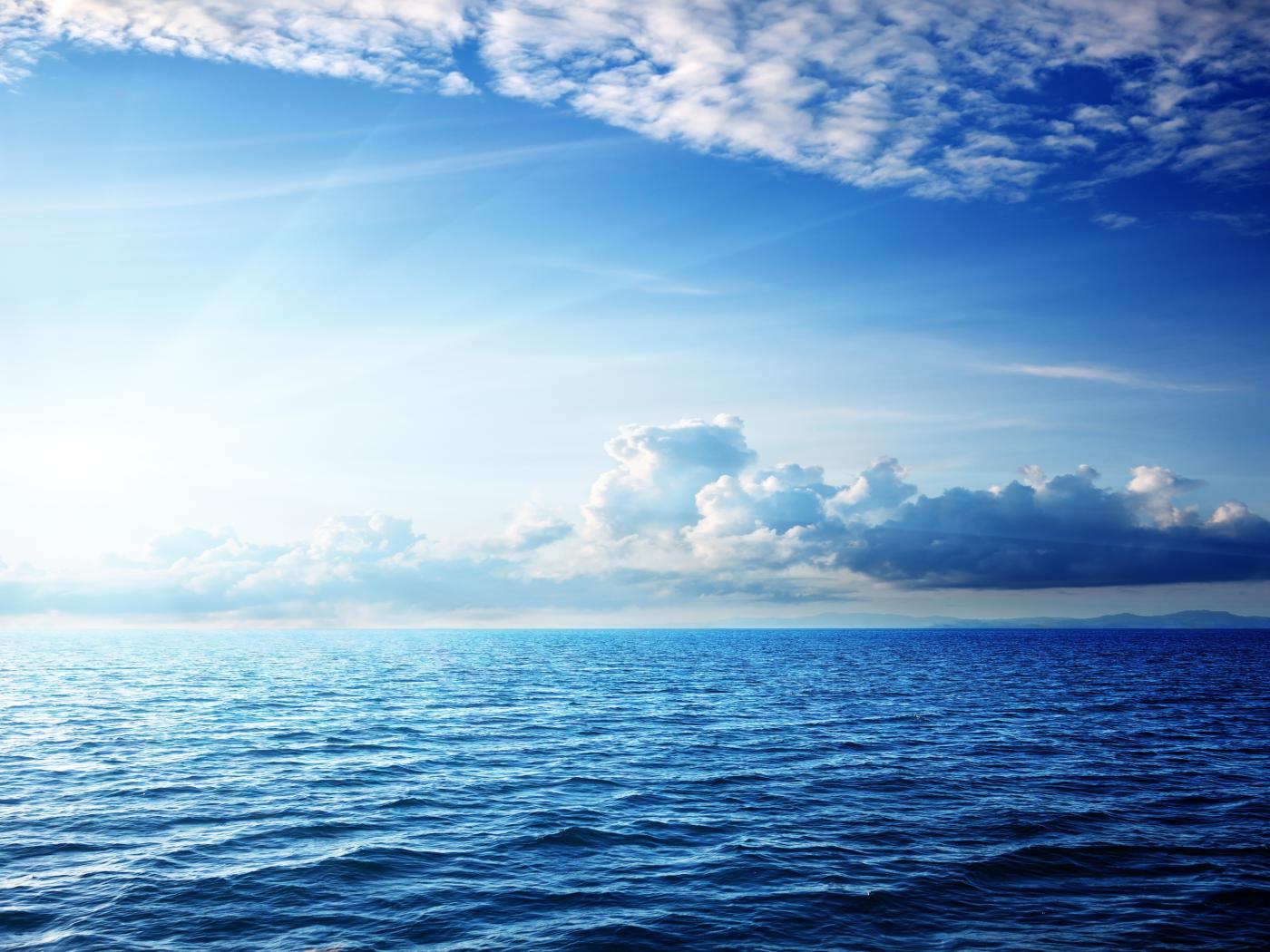 Wallpaper Calm blue sea under a clear sky with white clouds