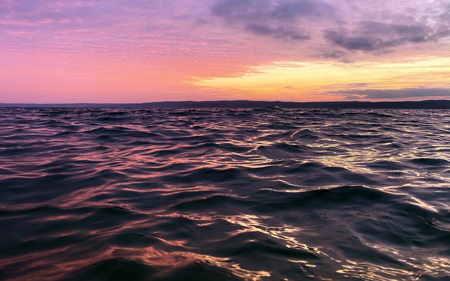 Wallpaper Pink sunset over a calm sea
