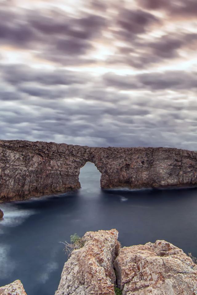 Wallpaper Arch in the rock in the sea under a cloudy sky