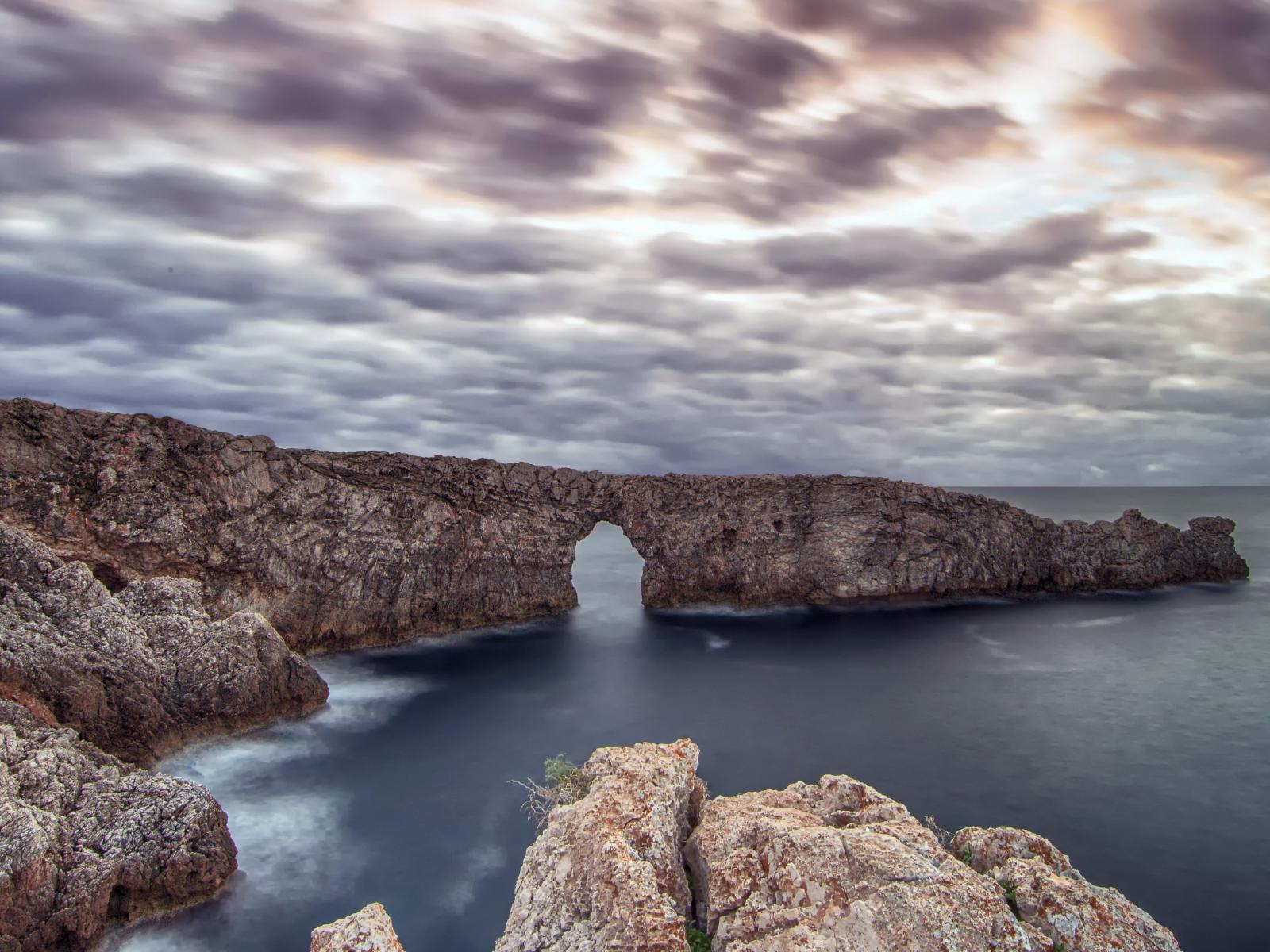 Wallpaper Arch in the rock in the sea under a cloudy sky