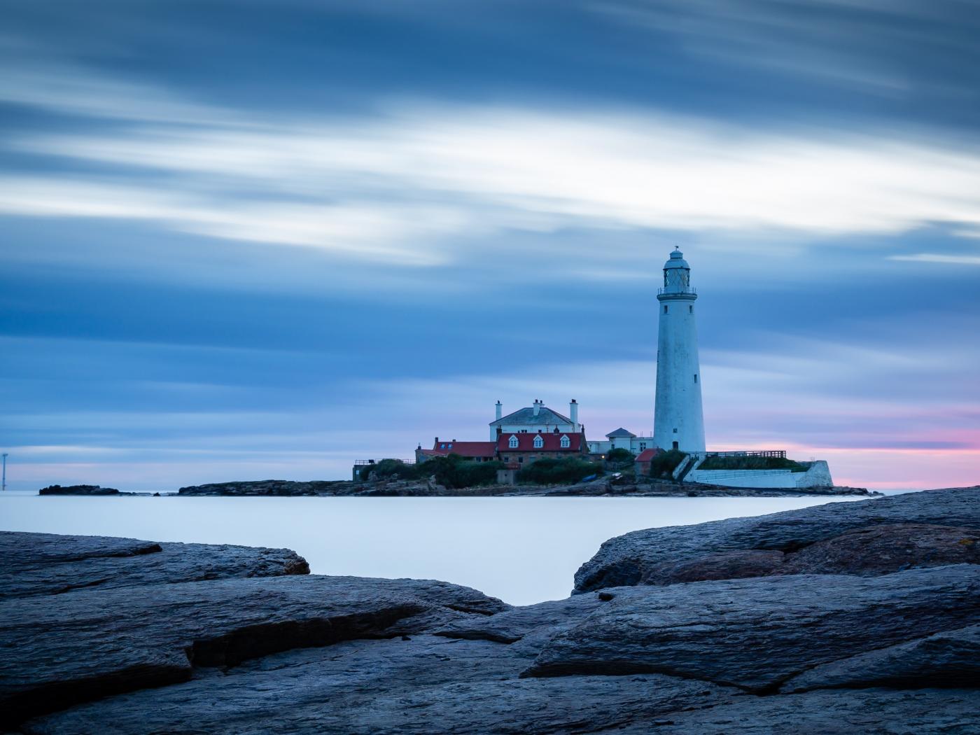 Wallpaper View from the stone coast to the lighthouse in the sea