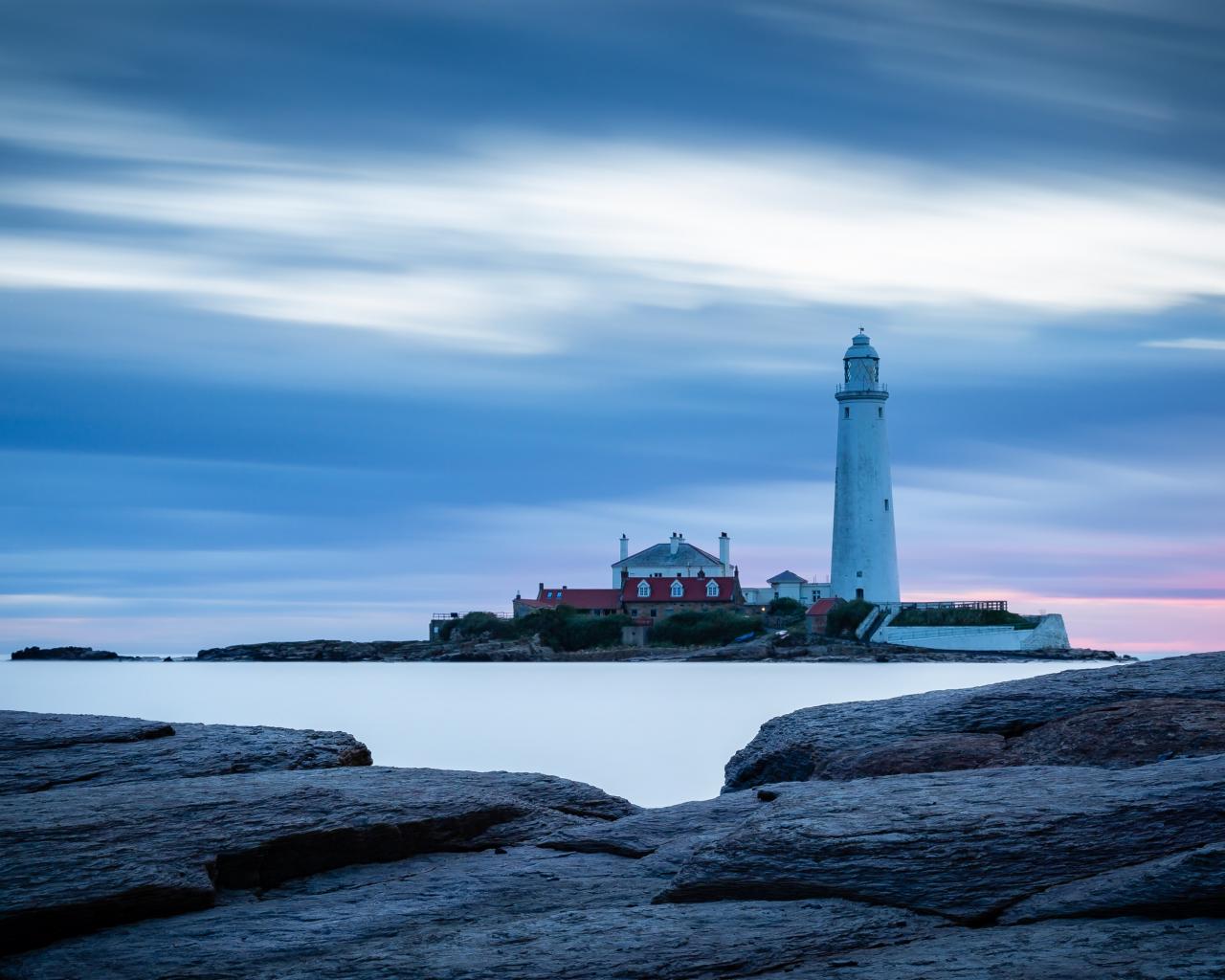 Wallpaper View from the stone coast to the lighthouse in the sea