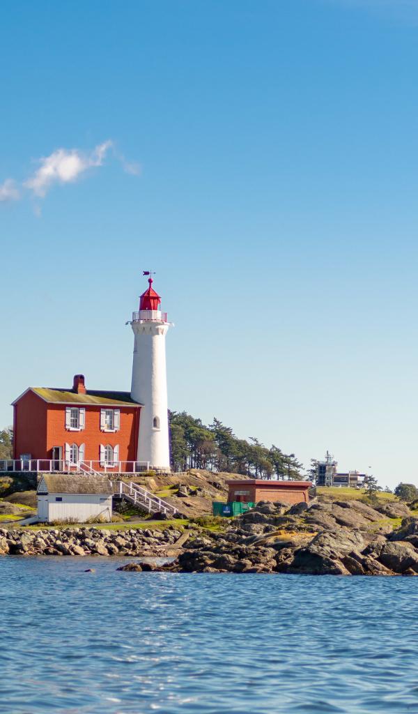 Wallpaper Lighthouse on the stone seashore under the blue sky