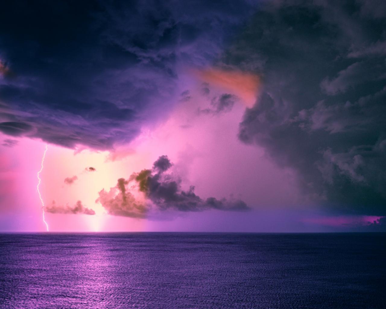 Wallpaper Stormy sky with black clouds with lightning over the sea