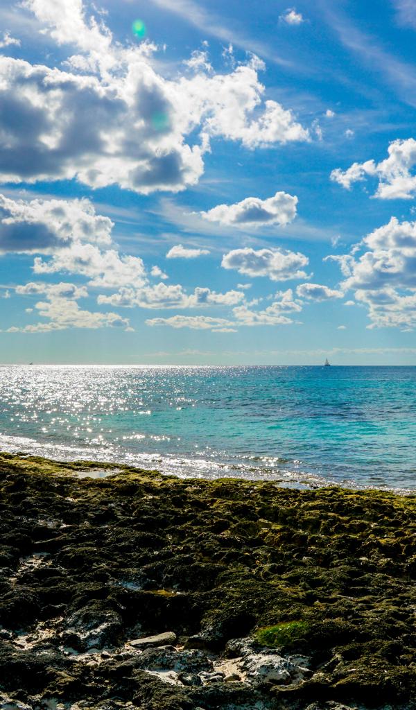 Wallpaper Bright blue sky with white clouds over the sea