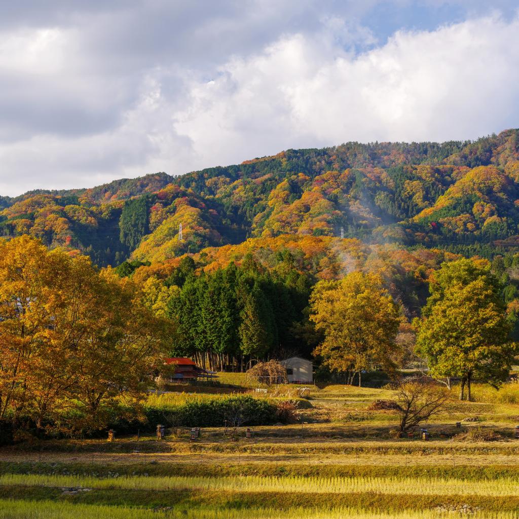 Wallpaper The hills are covered with autumn forest in the sun