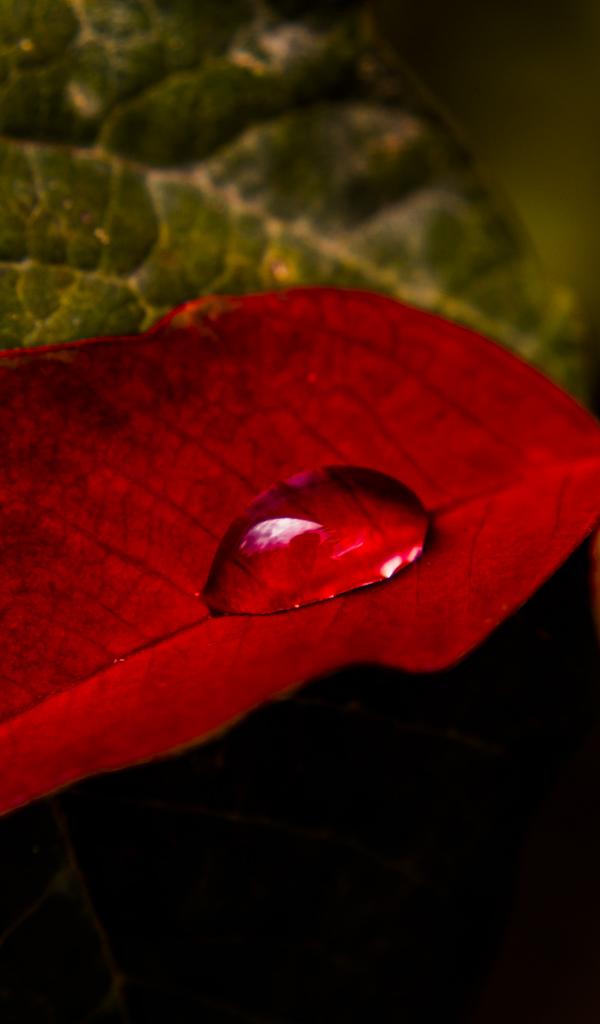 Wallpaper Red leaf with a drop of dew