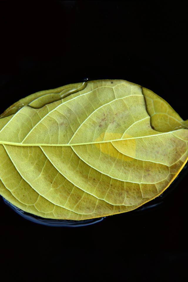 Wallpaper Yellow fallen leaf in water on a black background