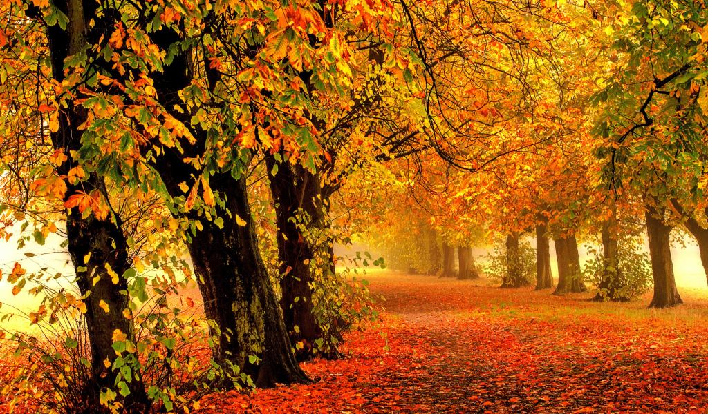 Wallpaper Bright yellow leaves fall on the road in autumn