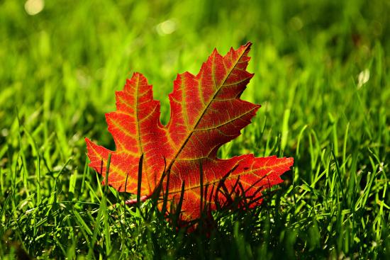 Wallpaper Yellow fallen autumn leaf in green grass